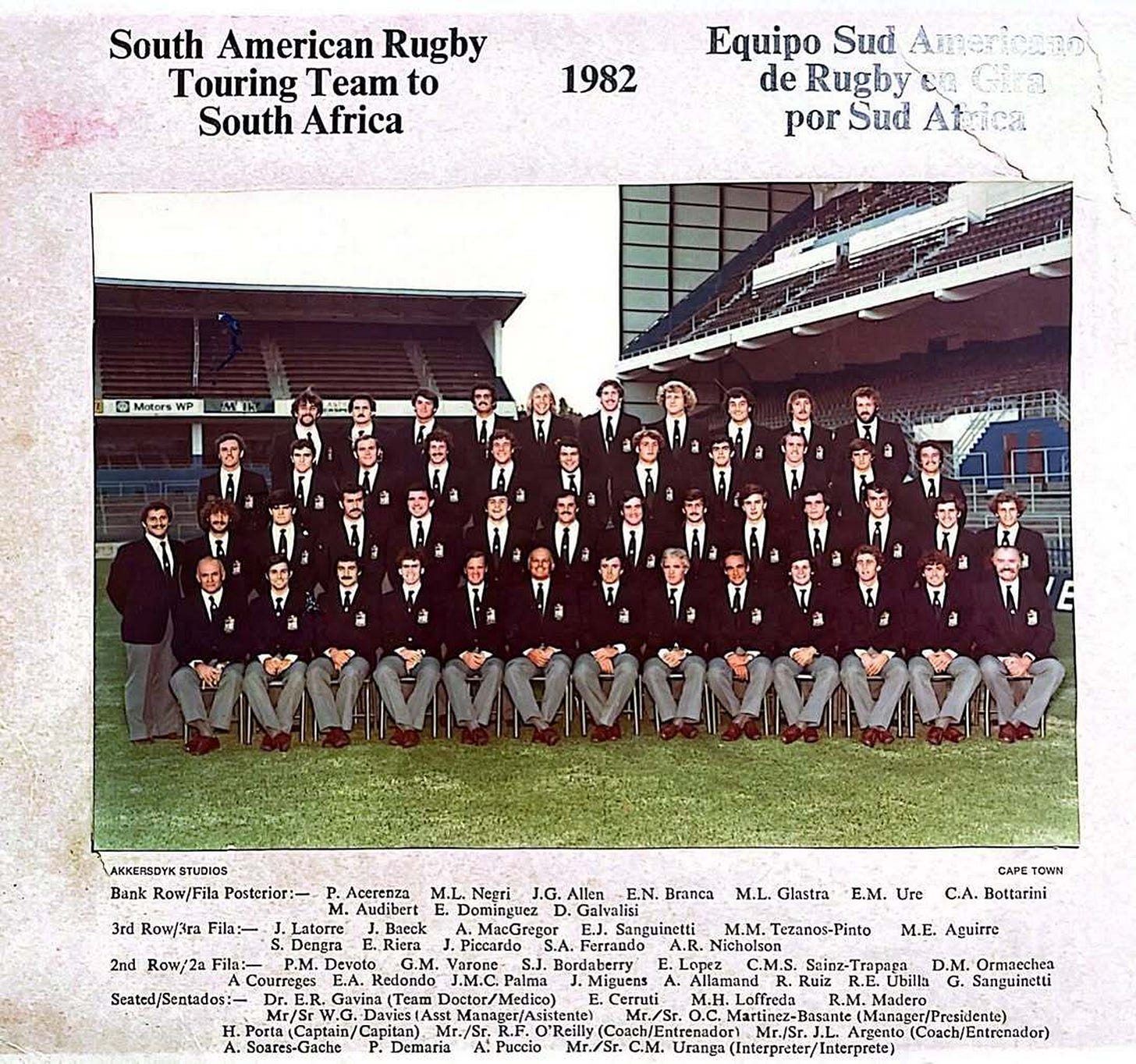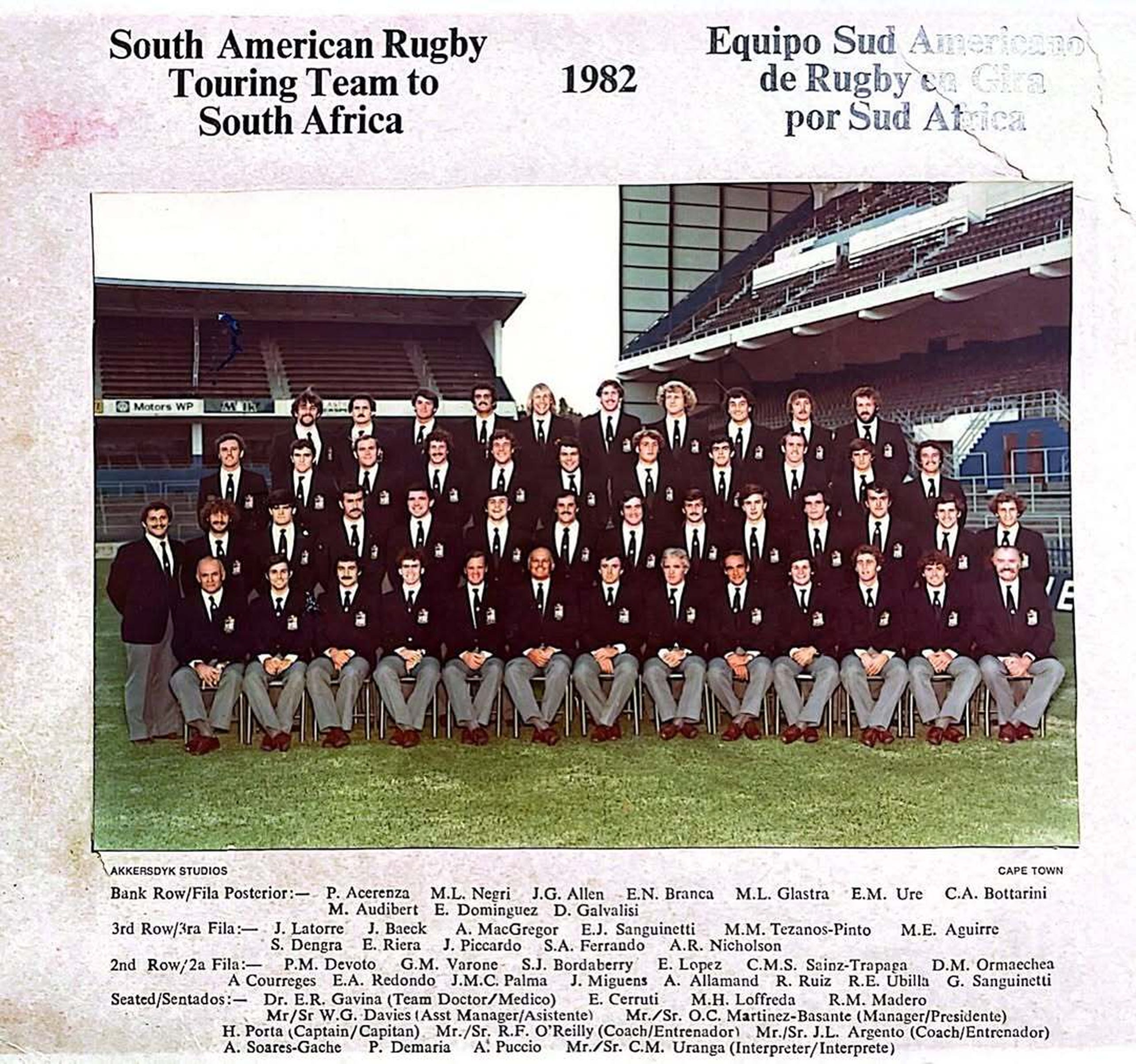 Other sources: Sport & Apartheid Jean Durry, #SudaméricaXV: el plantel para Paraguay rugbyamistadyvalores. Rediscovering the South African Games: A Neglected Chapter in South African Sports History Duncan Lotter,. 122 años en 122 partidos Unión Argentina de Rugby. 1982 Scenes in the Southern Cone,. A 39 años de un triunfo que marcó la historia del rugby argentino Rugby Champagne. A Long Shadow: The 1981 Springbok Tour of New Zealand Sebastian Potgieter,. Deporte y militancia: la historia de los rugbiers desaparecidos El Grito del Sur. El día que XV argentinos vencieron a Sudáfrica ESPN,. La historia detrás del equipo de Sudamérica XV Chile Rugby. La leyenda negra - El rugby argentino, el apartheid sudafricano y la ilusión de mantenerse al margen de la realidad Andrés Reggiani,. La épica victoria de Sudamerica XV sobre los Springboks en pleno apartheid Cordoba XV. Las anécdotas más impactantes de la épica victoria de Sudamérica XV ante los Springboks en pleno apartheid Infobae,. Legionario Nicolás Casanova. Leyendas del Rugby Historia de Sudamérica XV YouTube transcript,. Macello Calandra, nuevo Presidente de Sudamérica Rugby Unión de Rugby del Uruguay. Renovación del Consejo Directivo de Sudamérica Rugby Sudamérica Rugby,. South Africa prepare for the unexpected, The Guardian. Sports isolation and the struggle against apartheid in South African sport Rademeyer,. The Day the Pumas Stunned the Springboks MDZol. The Flight of the Condors Through Apartheid South Africa La Tercera,. The Silenced Squad: Argentina’s Dirty War and La Plata Rugby. Art and Architecture, mainly. Unión Argentina de Rugby Memoria Temporada año 1991.